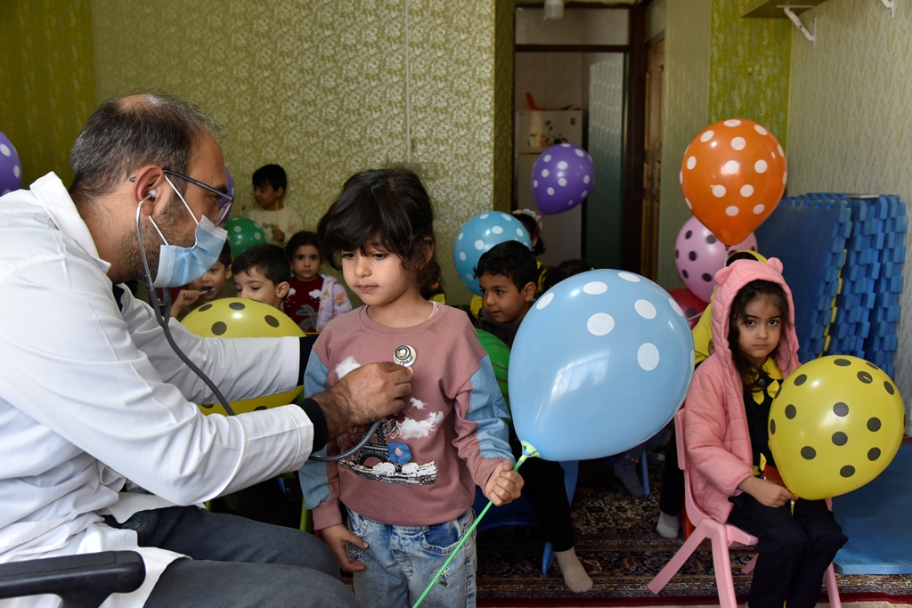 در این طرح 20 کودک از نظر سلامت قلب، ریه، گوش، حلق و ... معاینه شدند و ایمنی و بهداشت محیط مهدکودک مورد ارزیابی قرار گرفت.