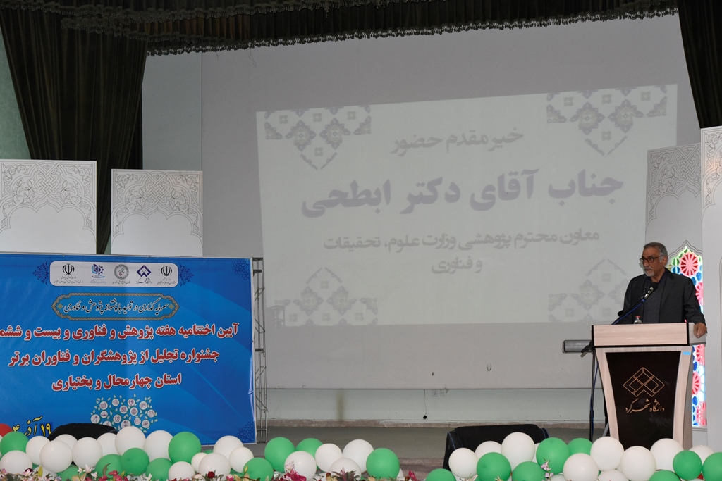 به گزارش روابط عمومی دانشگاه شهرکرد، روز چهارشنبه 19 آذرماه 1404، آیین اختتامیه هفته پژوهش و فناوری استان چهارمحال و بختیاری، با حضور دکتر سعید کریمی رییس دانشگاه شهرکرد و دبیر ستاد استانی هفته پژوهش و فناوری، مهندس جعفر مردانی استاندار چهارمحال و بختیاری، دکتر سید مهدی ابطحی معاون پژوهشی وزارت عتف، ملک محمد محمودیان معاون توسعه و مدیریت منابع استانداری و جانشین رییس ستاد استانی، دکتر یحیی رمضانی رئیس سازمان مدیریت و برنامه‌ریزی استان، دکتر اسماعیل پیر علی رییس پارک علم و فناوری و جمعی از دانشگاهیان در دانشگاه شهرکرد برگزار شد.