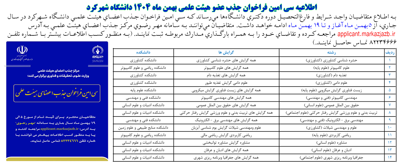 «اطلاعیه شماره ۲ ثبت نام پذیرفتهشدگان دوره کارشناسی و دکترای عمومی (دامپزشکی) سال تحصیلی ۱۴۰5-1404 دانشگاه شهرکرد»